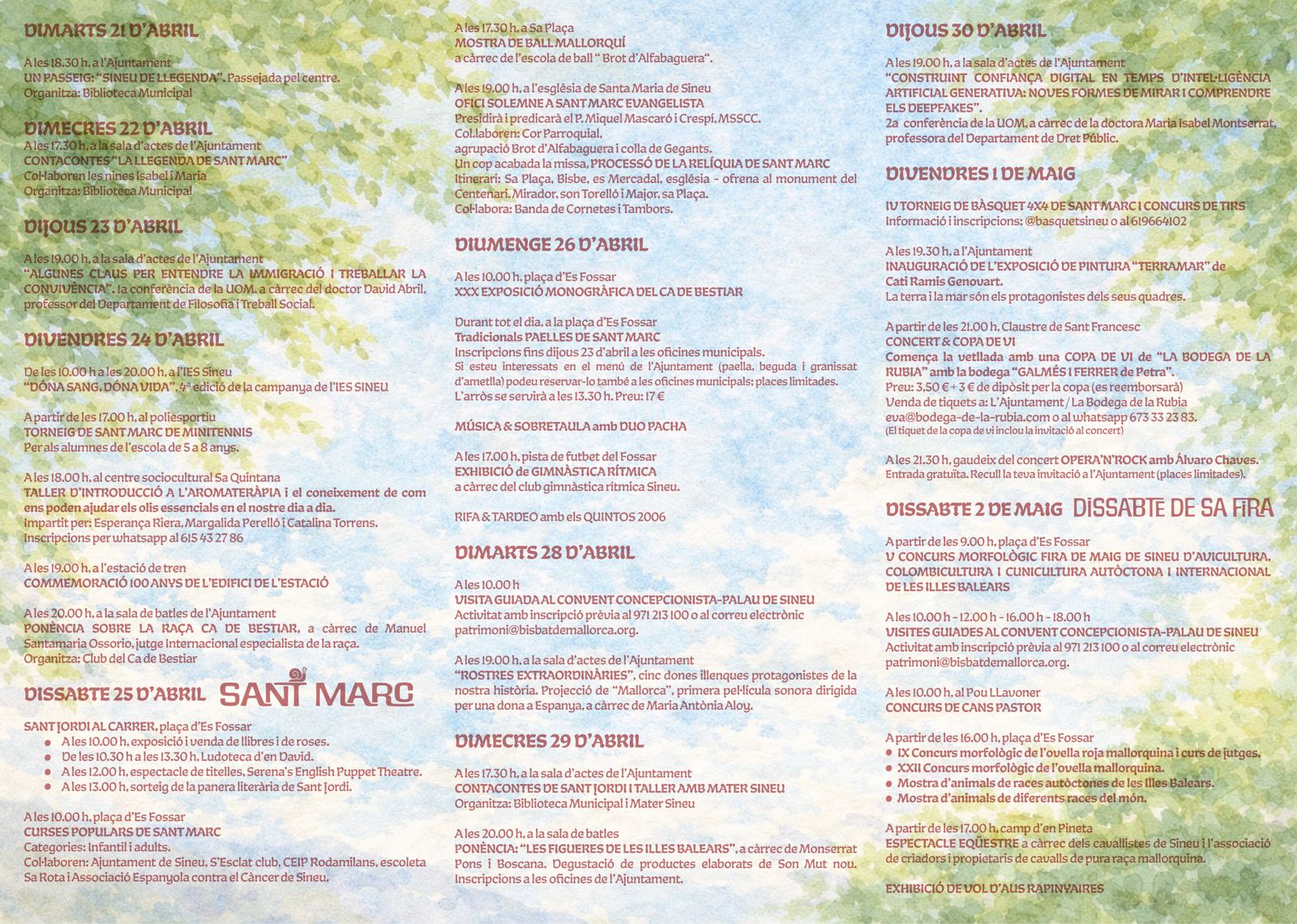 L'Ajuntament de Sineu té el plaer de posar a disposició de la ciutadania el programa d'activitats organitzades amb motiu del patró, Sant Marc, i de Sa Fira de maig 2026.